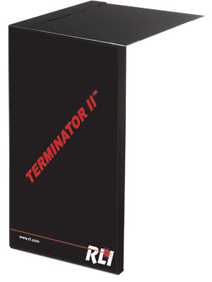 The RLI Terminator II™ is an open rectangular-shaped metal box (two-sided and the top) that is covered internally with a high temperature matrix absorber material that serves as both a beam and temperature trapping agent. The Terminator II™ is designed to withstand irradiance levels of 300 W/cm2 and is ideal for lasers with total average powers of 100 watts or less. This is ideal in both lab or industrial settings and is especially useful on a optical bench to cover “beam bender” optics or anywhere that a stray beam may occur that requires trapping to enhance safety.