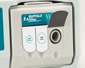 Versatile three-port lter will accommodate 1/4” (6mm), 3/8” (9.5mm) and 7/8” (22mm) tubing diameters for use in various procedures without adapters. Hidden male and female ports allow for ease of tube attachment without risk of user contact.