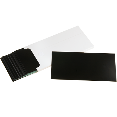ZAP-IT® paper provides a quick, thermally based estimate of beam image and size. The paper is thermally sensitive over a broad spectrum from ultraviolet to infrared. It is simple to use. Hold or fasten it in the beam path at the point where the beam imprint is to be recorded. Pulse the laser and a permanent visual record is produced, corresponding to the energy distribution within the laser beam. If the laser is continuous wave (CW), you can create a short pulse by Q-switch, mechanical chopper, or by physically turning the laser on and off rapidly.
