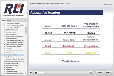 This program is divided into a Physics Module and a Medical Devices Module. The Physics Module introduces students to the properties and physics of laser light. The Medical Devices Module focuses how laser light interacts with different absorbers in tissue with a variety of different medical lasers and delivery systems. It also looks at the key specialties utilizing this technology.