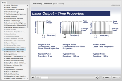 - Module 3: Laser Accidents - explains how laser accidents have occurred and how they can be avoided.